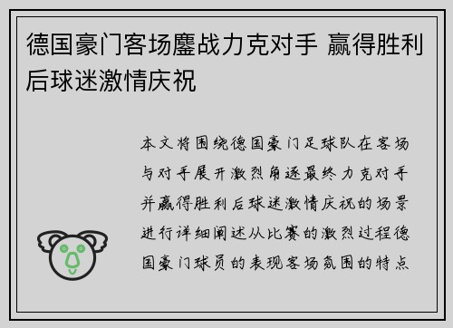 文章摘要:弗赖堡在最近的客场比赛中成功击败对手,展现了强劲的竞技状态和顽强的战斗精神。这场胜利不仅提...