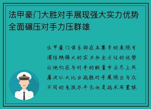 在竞技体育的世界里,强劲的球队常常依赖于稳定的实力、出色的团队合作、精湛的战术布局以及球员的个人能力...